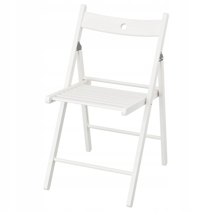 Białe, składane krzesła. Idealnie sprawdzą się we wszystkich plenerowych aranżacjach.