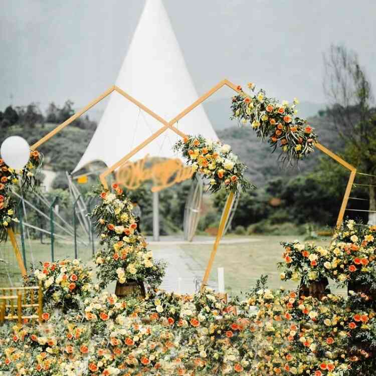 Przenośny, składany złoty stelaż, który doskonale sprawdzi się do aranżacji ślubnych jako tło za Parą Młodą, bramek oraz innych dekoracji.