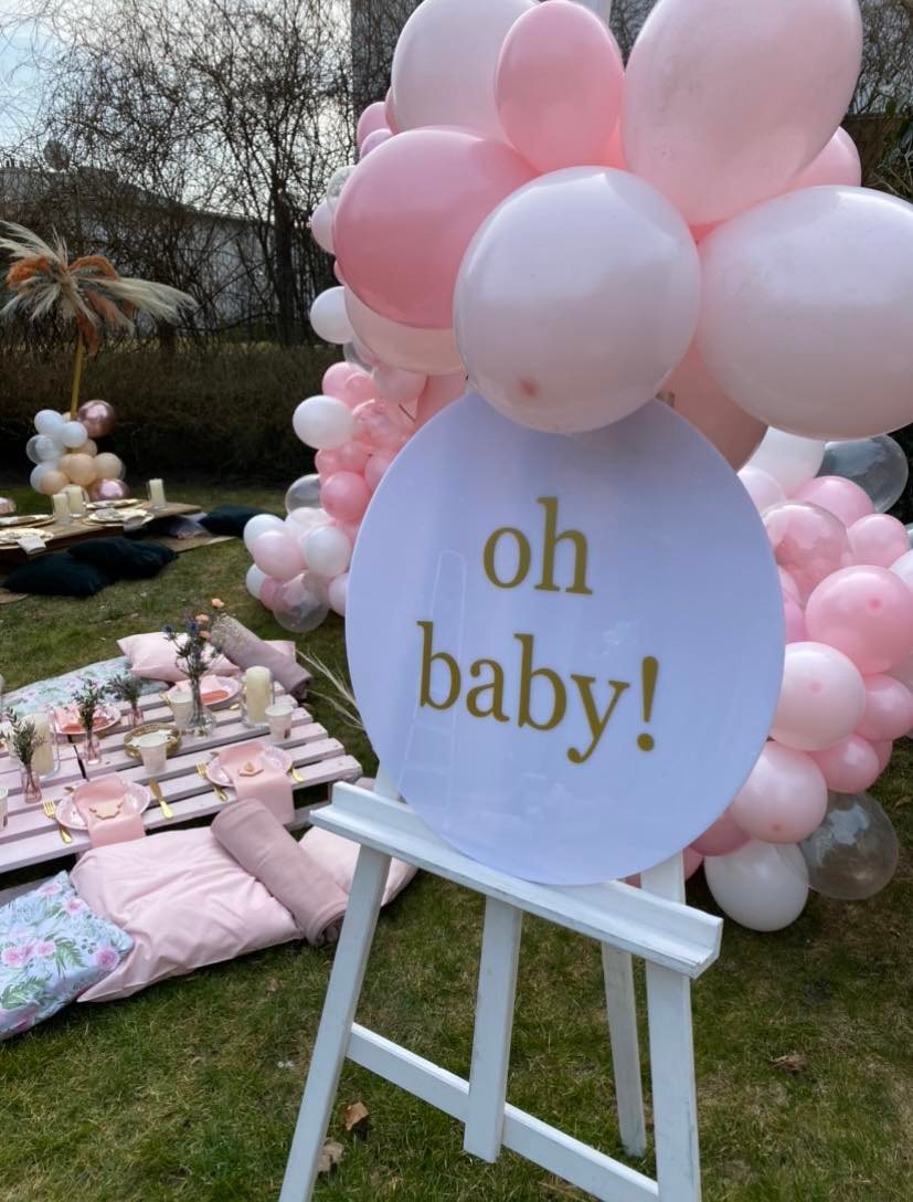 Biała tablica wykonana z plexi z napisem złotym OH BABY